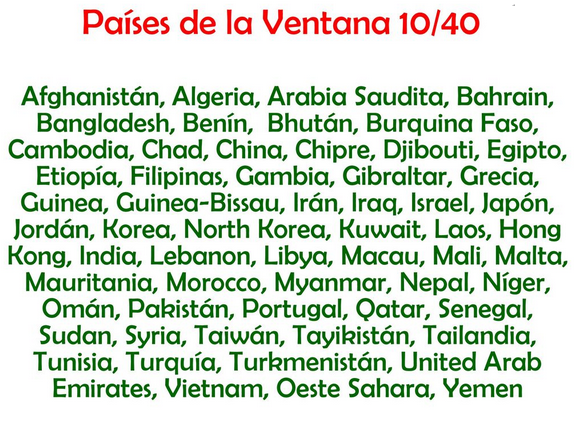 La ventana 10/40 expresa varias consideraciones importantes que nos demandan orar por este lugar: